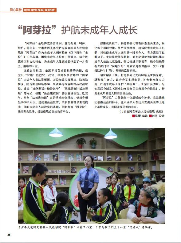 2025年,阿克塞县人民检察院深入践行“最有利于未成年人”原则,坚持“惩治与挽救并重、预防与保护同行”的工作理念,以独具民族特色的“阿芽拉”未检品牌为统领,全面履行检察职能,协同各方力量,共同织密有温度、有力度、有实效的未成年人综合司法保护网。